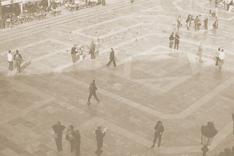 Es compon de tres pisos o galeries superposades amb arcades obertes a l’exterior, destinades a la contemplació de processons i actes públics, i arcs de mig punt recolzats en el primer pis sobre pilastres d’ordre dòric; en el segon sobre pilars i pilastres d’ordre jònic; i en el tercer sobre columnes jòniques.