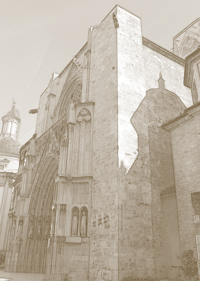 Per davall s’estén el carrer del Micalet, que uneix la porta dels apòstols amb la torre del Micalet.