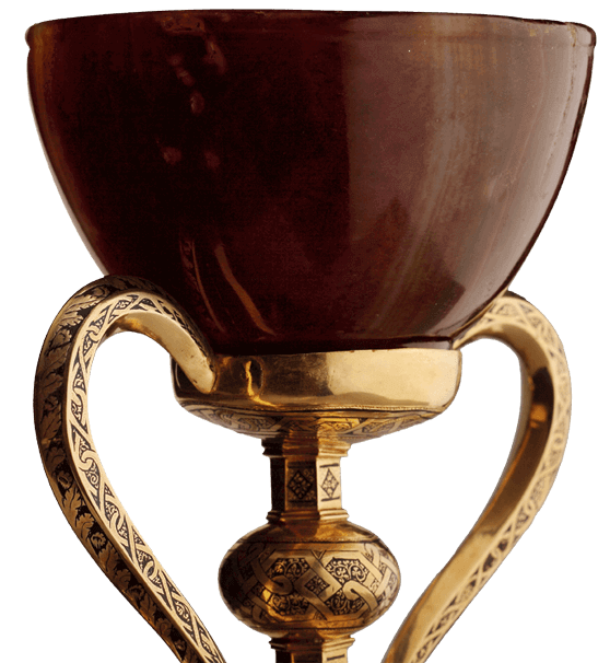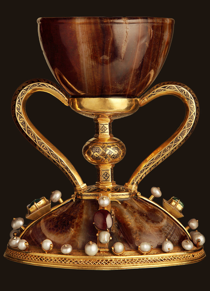 És una tassa d’àgata finament polida, que mostra vetes de colors càlids quan refracta la llum; és una preciosa “copa alexandrina” que els arqueòlegs consideren d’origen oriental i dels anys 100 al 50 abans de Crist 1.