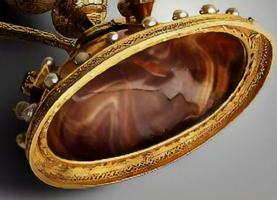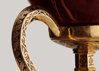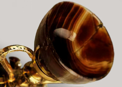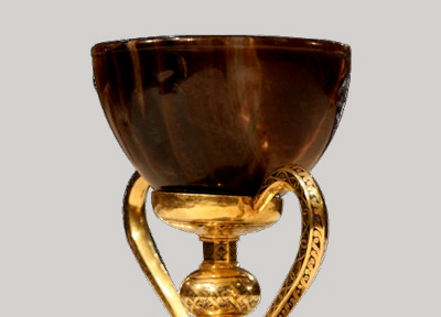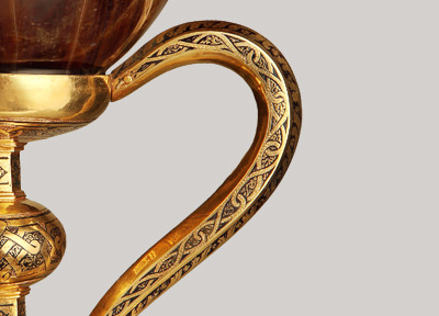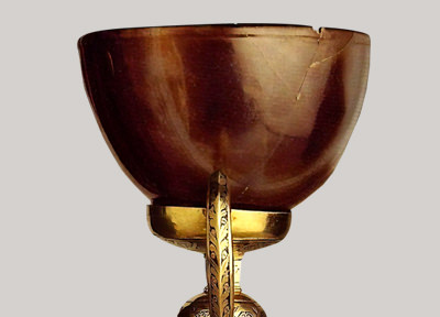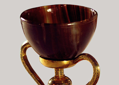 És una tassa d’àgata finament polida, que mostra vetes de colors càlids quan refracta la llum; és una preciosa “copa alexandrina” que els arqueòlegs consideren d’origen oriental i dels anys 100 al 50 abans de Crist 1.