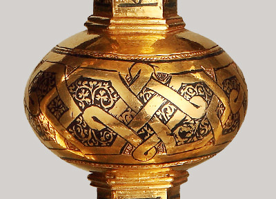 Inscripció àrab en caràcters cúfics. Es transcriuen com li-*izahirati o lilzahira, per al qual rellueix.