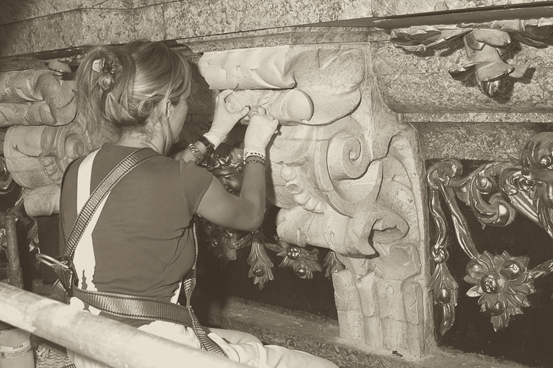 Restauració de tota l’obra barroca de la capella major, marbres, estucs i daurats.