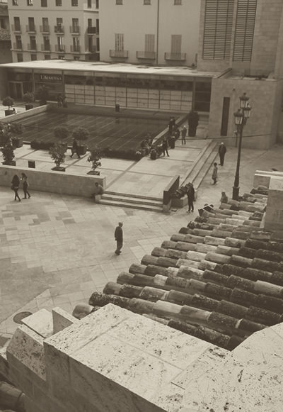 Vista de l’obra externa des de la plaça de l’Almoina.