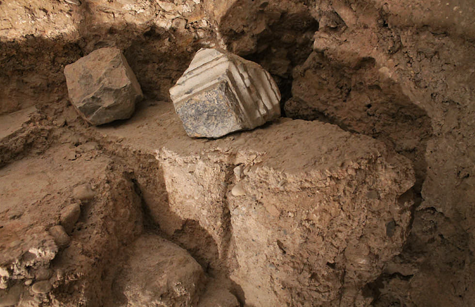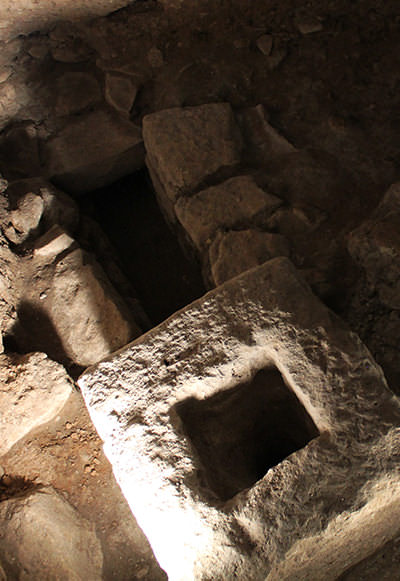 Sistema de desguàs de carrer romà amb embornal de pedra i canal de maçoneria