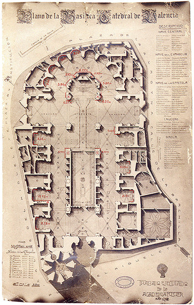 En el segle XIV es van construir la porta gòtica o “dels apòstols” (començada en 1300), el cimbori, l’aula capitular (capella del Sant Calze, començada en 1356) i el campanar anomenat “Micalet” (1381), totes dues obres sota la direcció d’Andreu Juliá; en el següent segle (1458-1487), Francesc Baldomar i Pere Compte, van prolongar la nau als peus en un tram, fins a aconseguir les proporcions que podem contemplar hui.